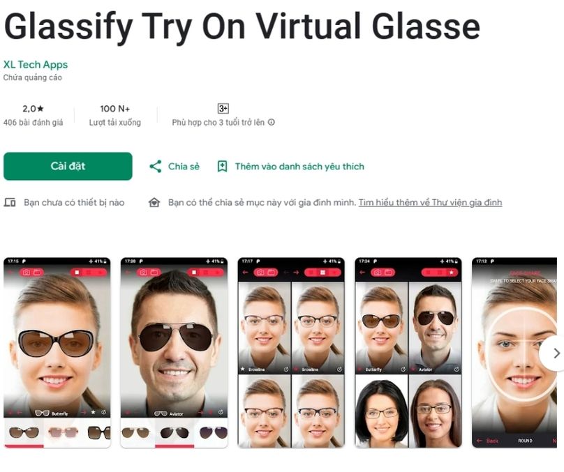 Ngoài ra, Virtry cũng là một lựa chọn tuyệt vời. Ứng dụng này cho phép bạn thử kính trực tuyến mà không cần phải đến cửa hàng. Tương tự, GlassiFy cũng mang đến nhiều mẫu kính đa dạng và dễ dàng cho bạn lựa chọn.