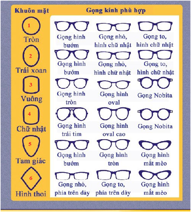 Với khuôn mặt góc cạnh, gọng kính oval hoặc kính không viền sẽ giúp làm mềm mại các đường nét. Ngược lại, hãy tránh các mẫu kính góc cạnh vì chúng có thể khiến khuôn mặt trông cứng nhắc. Cuối cùng, hãy lưu ý đến màu sắc của gọng kính; nên chọn màu tương phản với tông da của bạn để tạo điểm nhấn thu hút ánh nhìn.