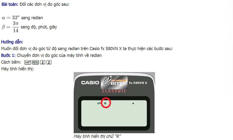 Khi làm việc với các bài toán lượng giác hoặc giải phương trình liên quan đến góc, việc chuyển đổi đơn vị góc giữa độ (Degree) và radian (Radian) trên máy tính cầm tay là điều hết sức cần thiết. Đặc biệt, dòng máy tính Casio fx-580VN X được sử dụng phổ biến trong trường học và các kỳ thi. Tuy nhiên, không phải ai cũng biết cách đổi sang chế độ radian một cách dễ dàng trên máy tính này. Bài viết sau sẽ hướng dẫn chi tiết cho bạn cách chuyển đổi đơn vị góc sang radian trên máy tính fx-580VN X một cách nhanh chóng và chính xác.