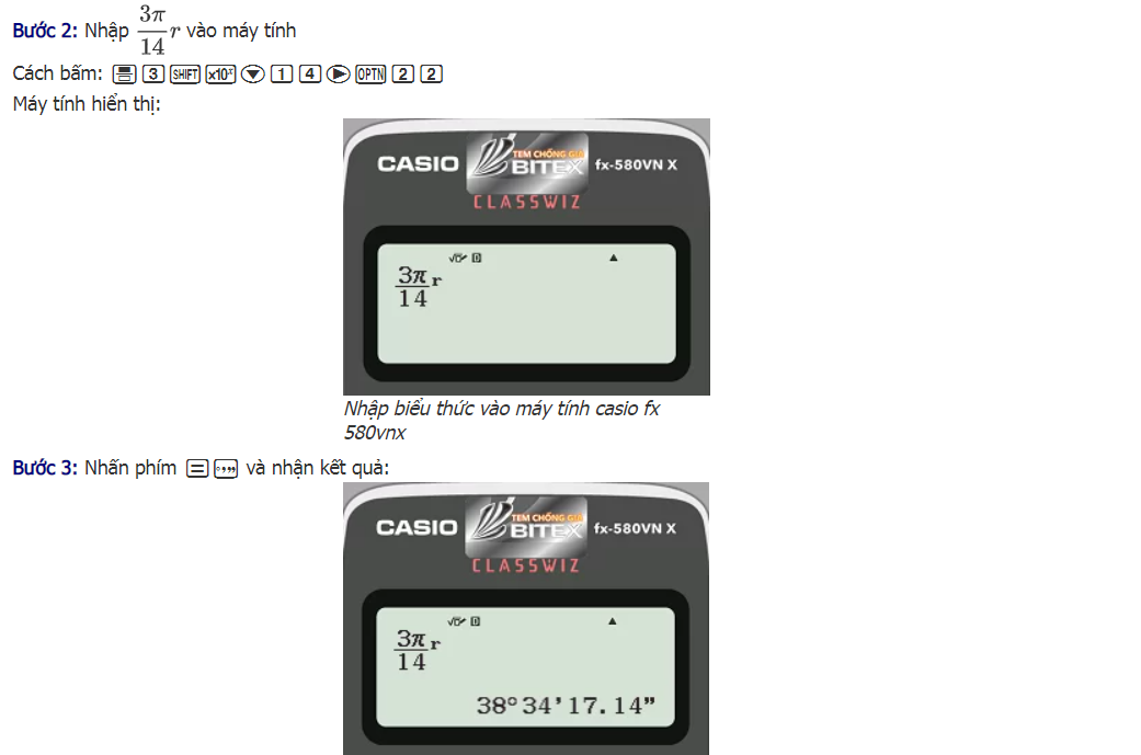 Khi bạn cần chuyển từ radian về độ, chỉ cần nhân giá trị radian với 180 và chia cho π. Việc sử dụng máy tính Casio FX-580VN X sẽ giúp bạn thực hiện nhanh chóng và chính xác các phép tính này, hỗ trợ rất nhiều trong việc học tập và làm toán. Hãy thử ngay để trải nghiệm tính năng tuyệt vời này!