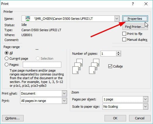 Tiếp theo, hãy nhấn vào nút Properties để truy cập vào các tùy chọn in. Tại đây, bạn cần tìm tab có tên Basic hoặc Printing. Trong phần này, hãy chọn tùy chọn “Print on Both Sides” để đảm bảo rằng bạn có thể in cả hai mặt của trang. Sau đó, quay lại cửa sổ in và nhấn vào nút Print để bắt đầu quá trình in.