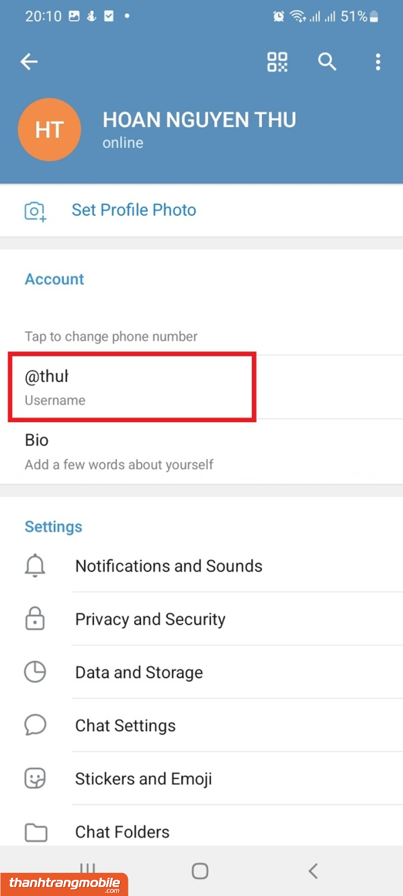 Khi bạn đã vào phần Cài đặt, hãy tìm đến mục “Tên người dùng” (Username). Nếu bạn chưa có, hãy tạo một tên người dùng cho tài khoản của mình. Tên này sẽ là duy nhất và giúp mọi người dễ dàng tìm thấy bạn trên Telegram. Sau khi đã có tên, bạn sẽ thấy link Telegram của mình xuất hiện dưới dạng https://t.me/@TênNgườiDùng. Chỉ cần sao chép đường link này và chia sẻ với bạn bè.