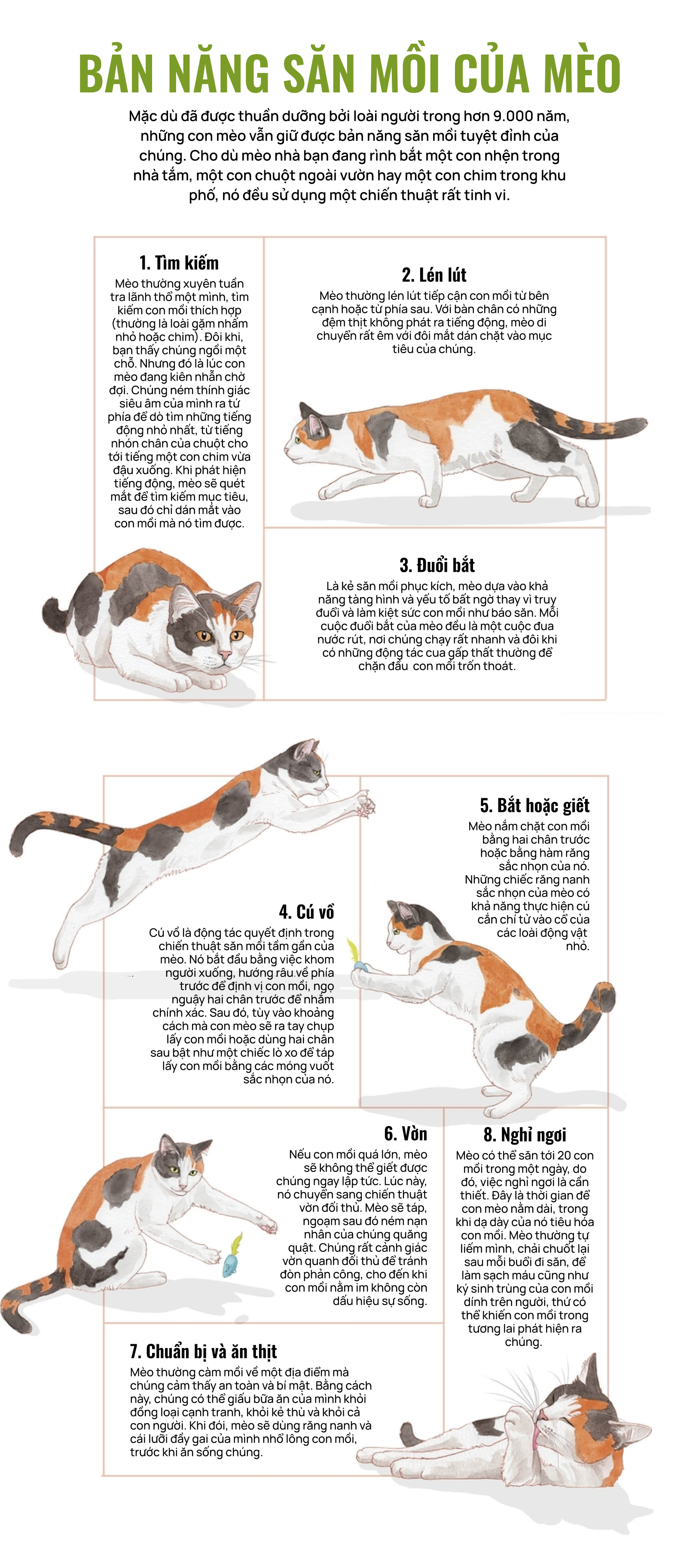 Điều đáng chú ý là hành động săn mồi không chỉ còn là việc kiếm ăn mà còn thể hiện bản chất hoang dã của mèo. Đối với những chú mèo nuôi, việc thể hiện bản năng này cũng giúp khẳng định vị thế và tôn vinh bản năng vốn có của chúng.