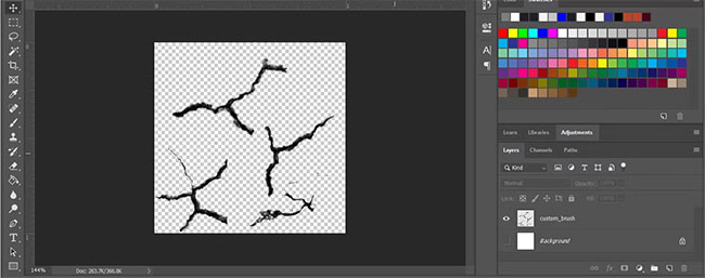 Ngoài ra, bạn có thể tạo brush từ file ảnh PNG có nền trong suốt. Chỉ cần kéo thả file đó vào Photoshop, sau đó thực hiện các bước tương tự để lưu lại. Nếu bạn muốn thêm một số hiệu ứng độc đáo, như tạo brush hiệu ứng manga với các chấm cách đều, chỉ cần tạo một hàng các chấm nhỏ và lưu như một brush mới.