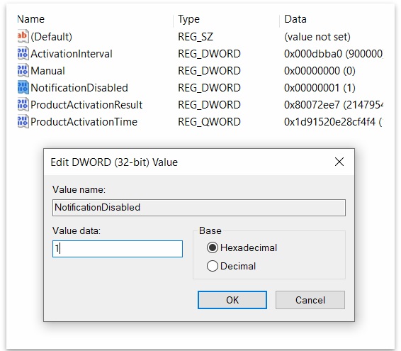 Ngoài cách trên, bạn cũng có thể sử dụng cửa sổ RUN. Nhấn tổ hợp phím Ctrl + R, nhập “regedit” và nhấn OK để mở Registry Editor. Tại đây, bạn có thể tìm và thay đổi giá trị hiển thị thông báo trong phần Activation về 1 để tắt thông báo.