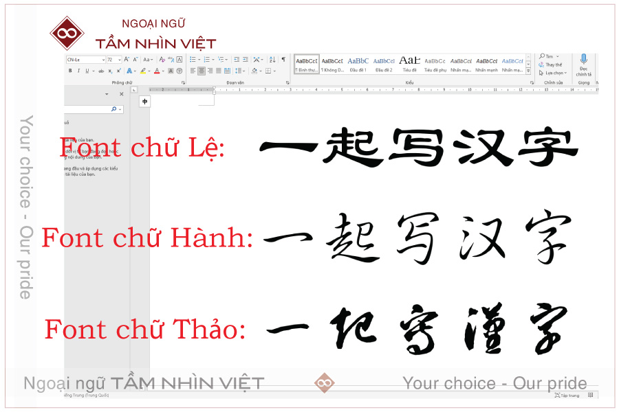 Ngoài ra, việc sử dụng các font chữ viết tay như Cao Shu mang lại cảm giác tự do, phóng khoáng, rất phù hợp cho những ai yêu thích sự sáng tạo. Tổng hợp bộ font chữ tiếng Trung với những lựa chọn đa dạng này sẽ giúp bạn dễ dàng biến hóa tài liệu của mình thành những sản phẩm độc đáo, gây ấn tượng sâu sắc với người xem.