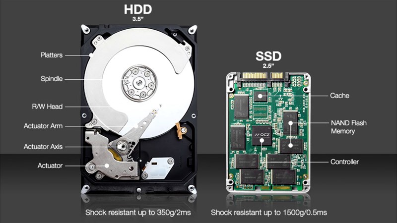 Một điểm cần chú ý là HDD có cấu trúc với nhiều bộ phận chuyển động, khiến nó dễ bị hao mòn theo thời gian. Các bộ phận này cũng làm tăng nguy cơ bị hư hỏng nếu gặp va chạm mạnh. Ngược lại, SSD không có bộ phận chuyển động và nhẹ nhàng hơn, ít bị ảnh hưởng bởi tác động vật lý, cho nên về cơ bản, SSD có độ bền tốt hơn.