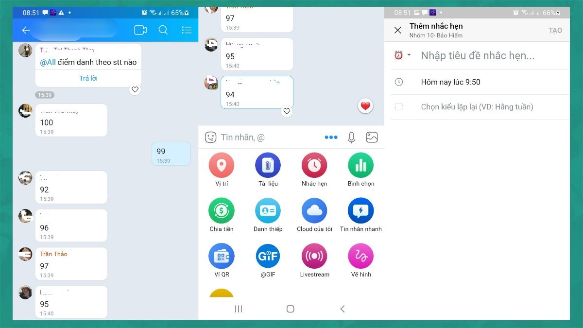 Cuối cùng, chỉ cần nhấn vào nút Gửi broadcast để hoàn tất. Một tính năng thú vị không kém là “Nhắc hẹn”. Bạn chỉ cần vào cuộc trò chuyện, nhấn vào biểu tượng ba chấm, chọn Nhắc hẹn và cài đặt thời gian, kiểu lặp cho tin nhắn. Thật đơn giản phải không? Giờ đây, bạn có thể dễ dàng tổ chức gửi tin nhắn vào thời điểm bạn mong muốn!