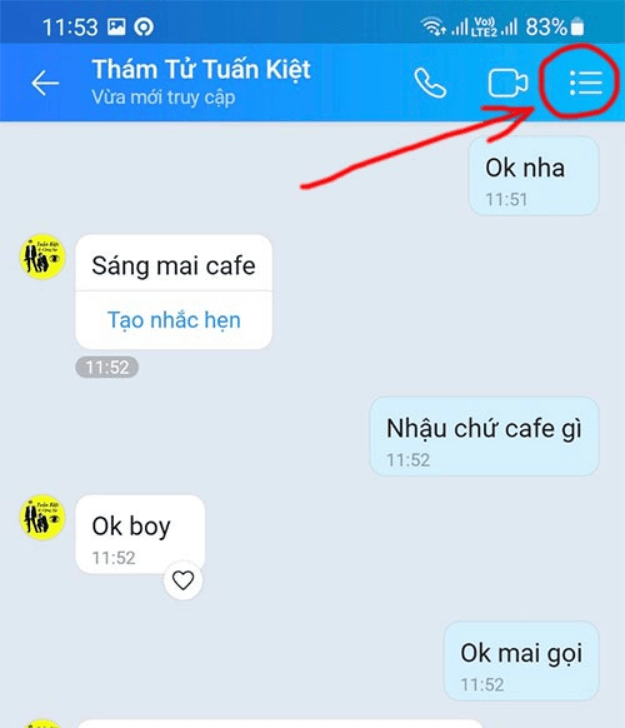 Tính năng hẹn giờ nhắn tin trên Zalo là một tiện ích vô cùng hữu ích cho người dùng, giúp bạn gửi tin nhắn vào thời điểm mong muốn mà không cần phải nhớ hoặc đợi. Để bắt đầu, bạn chỉ cần đăng nhập vào ứng dụng Zalo và mở hộp thoại tin nhắn của người mà bạn muốn gửi tin. Sau đó, hãy nhấn vào biểu tượng ba chấm ở dưới màn hình.