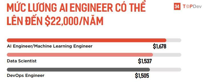 Để đạt được mức lương này, kỹ sư AI không chỉ cần kiến thức chuyên sâu về trí tuệ nhân tạo mà còn phải có kinh nghiệm thực tế, khả năng tạo ra sản phẩm giá trị cho doanh nghiệp. Đây là ngành rất khan hiếm nhân lực chất lượng cao, nên những người giỏi thường được trả lương rất cao, thậm chí cao hơn cả lãnh đạo cấp cao trong công ty.