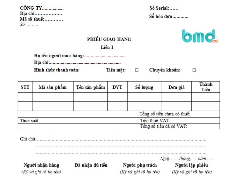 Mẫu phiếu giao hàng Excel tiện lợi tải về