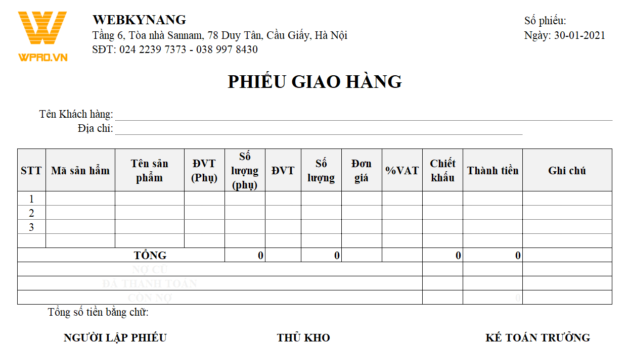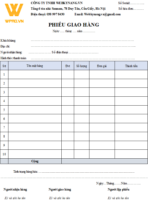 Mẫu Phiếu Giao Hàng Excel Miễn Phí