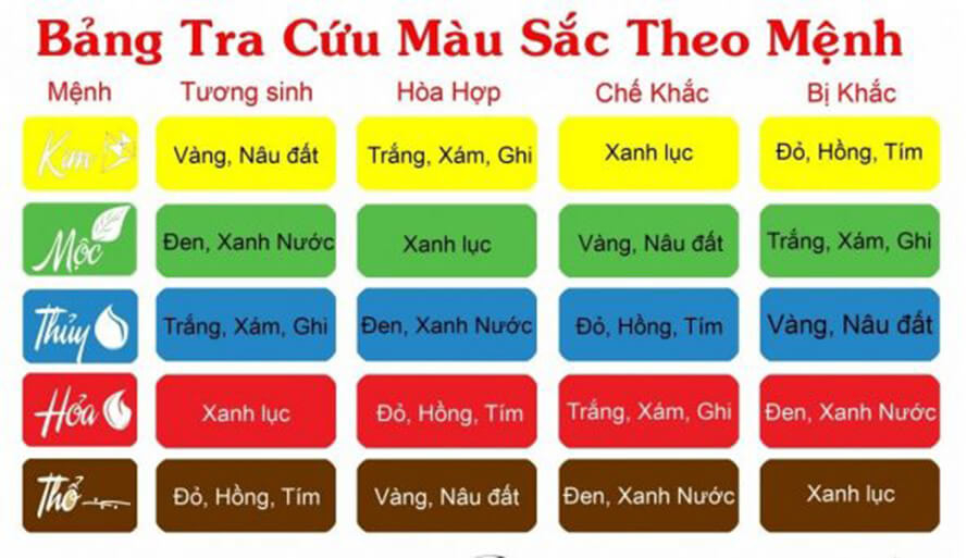 Ngoài ra, màu vàng và nâu cũng được xem là những lựa chọn tốt cho người mệnh Kim. Tuy nhiên, điều quan trọng là cần tránh xa những màu như đỏ, hồng, cam, tím và xanh lá cây. Những màu này thuộc hành Hỏa và Mộc, có thể gây xung đột với mệnh Kim, ảnh hưởng đến sự nghiệp và cuộc sống hàng ngày.