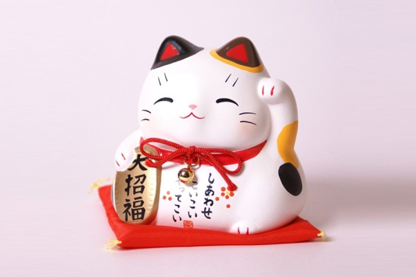 Mèo May Mắn thường được chế tác từ gốm sứ và có màu sắc đa dạng. Người ta tin rằng Mèo May Mắn mang lại tài lộc và bình an cho gia chủ. Bạn có thể bắt gặp những bức tượng nhỏ này trong các cửa hàng, văn phòng, thậm chí cả trong những ngôi nhà. Điểm đặc biệt là cách vẫy tay của mèo, tượng trưng cho sự kéo gọi khách hàng đến với chủ nhân.