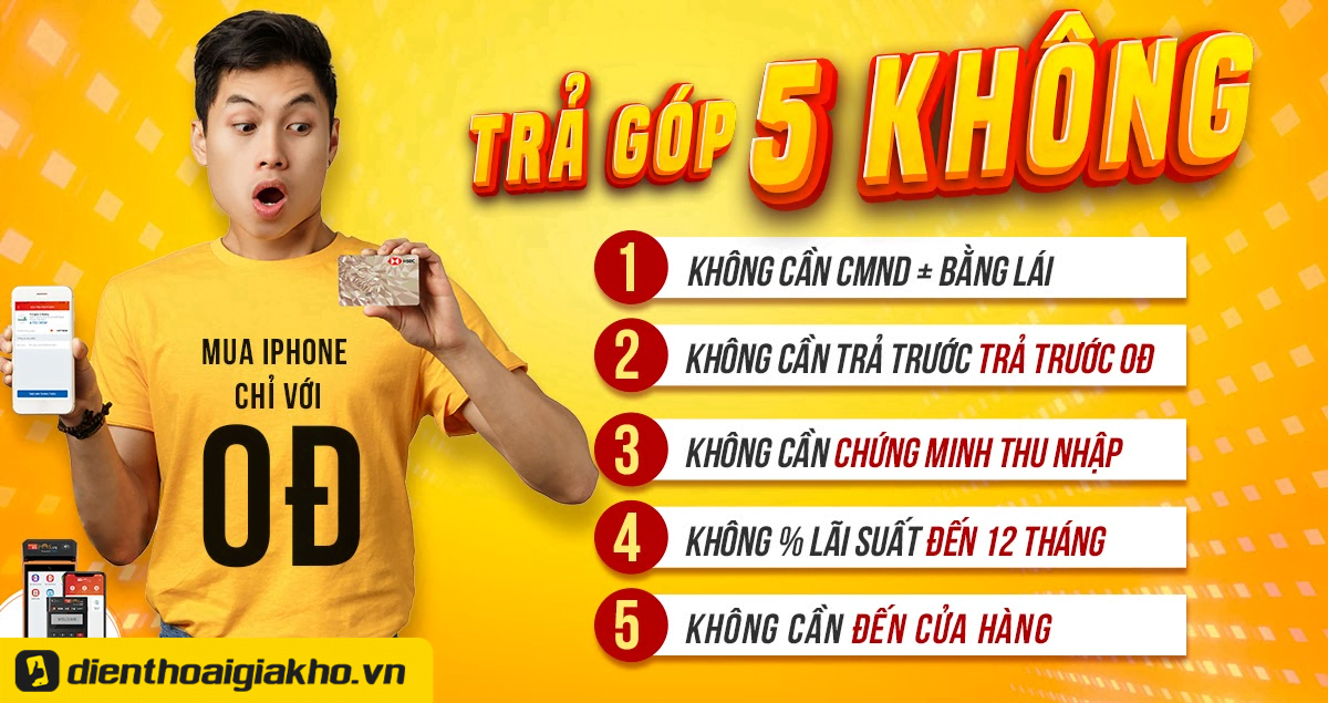 Điểm nổi bật của hình thức trả góp này là bạn không cần phải trả tiền trước. Điều này giúp người tiêu dùng có thêm linh hoạt trong tài chính. Bạn chỉ cần mang theo các giấy tờ cơ bản như CMND, sổ hộ khẩu, giấy xác nhận thu nhập và sẽ được nhân viên hỗ trợ xử lý hồ sơ rất nhanh chóng, thường chỉ trong khoảng 15 phút.