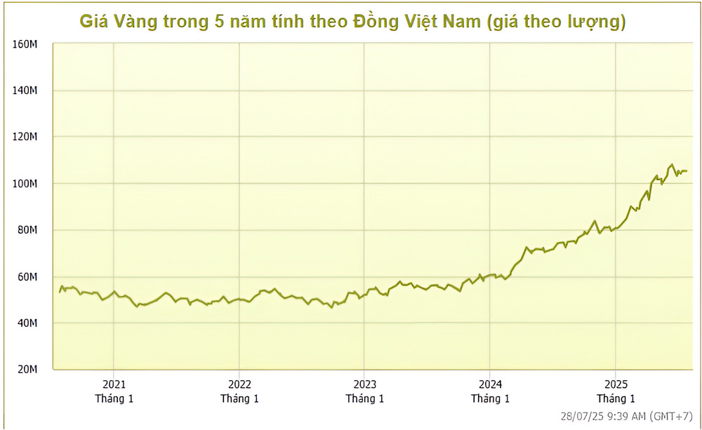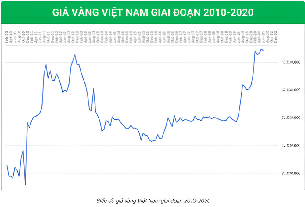 Nhìn rộng hơn, từ năm 2000 đến nay, giá vàng đã trải qua nhiều giai đoạn khác nhau. Mức giá bình quân năm 2000 chỉ là 6,8 triệu đồng, nhưng đến cuối năm 2011 đã vọt lên 42 triệu đồng/lượng. Đặc biệt, giai đoạn từ 2001 đến 2011, giá vàng đã tăng gấp 6,9 lần, tạo ra cơn “sốt vàng” tại Việt Nam.