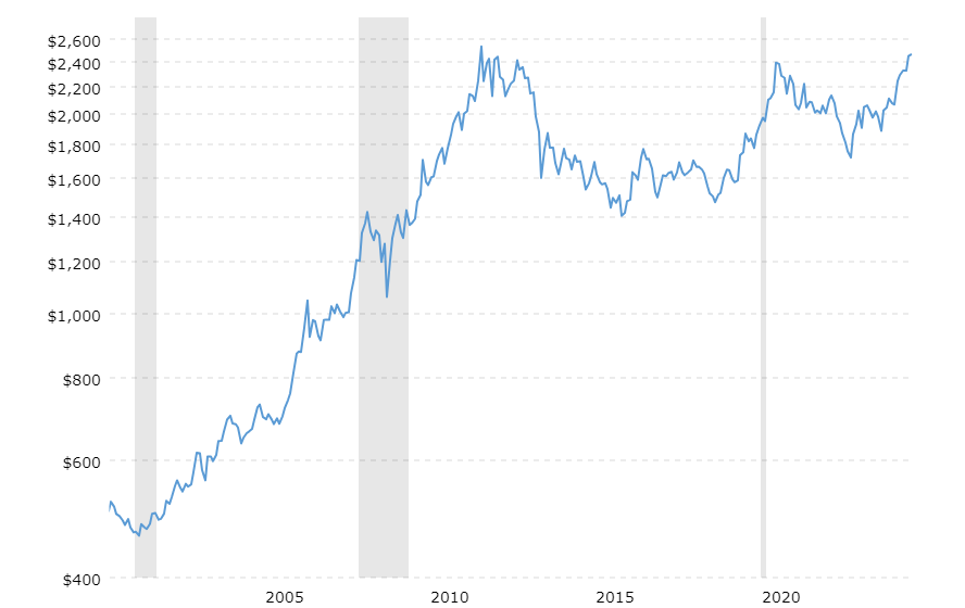 Trong khoảng thời gian này, giá vàng trên thị trường Việt Nam thường ở mức từ 350.000 đến 400.000 VNĐ/chỉ. Hơn nữa, yếu tố địa chính trị, như chiến tranh ở Iraq, đã tác động không nhỏ đến giá vàng, khiến cho người dân bắt đầu lưu tâm hơn đến việc đầu tư vào vàng. Với sự tăng mạnh của giá vàng sau này, nhiều người đã bắt đầu nhận thấy giá trị của nó không chỉ là một công cụ tích trữ tài sản mà còn là sự bảo vệ trước lạm phát.
