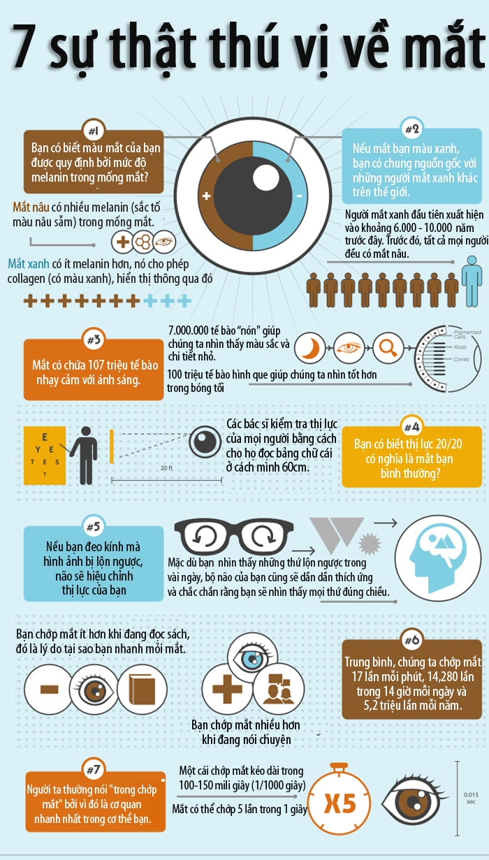 Đôi mắt được ví như cửa sổ tâm hồn, không chỉ giúp con người cảm nhận và khám phá thế giới xung quanh mà còn ẩn chứa vô vàn điều thú vị mà có thể bạn chưa biết. Đằng sau vẻ đẹp của chiếc nhìn là một cấu tạo phức tạp, khả năng cảm nhận hơn 10 triệu màu sắc, điều tiết ánh sáng tinh vi cùng nhiều đặc điểm độc đáo khác biệt giữa mỗi người. Trong bài viết này, chúng ta sẽ cùng tìm hiểu về những điều hấp dẫn liên quan đến mắt, từ màu sắc đa dạng, tầm nhìn tối ưu, khả năng nhấp mắt cho đến các bệnh lý phổ biến và bí quyết chăm sóc đôi mắt khỏe mạnh.
