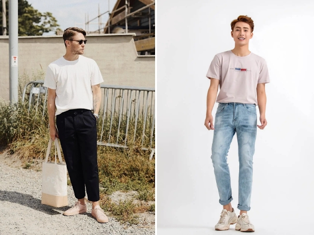 Màu sắc cũng rất quan trọng; một chiếc quần tây màu sáng kết hợp với áo thun trắng tạo nên sự hài hòa, giúp bạn nổi bật nhưng vẫn không quá chói mắt. Để tạo phong cách lịch sự hơn, bạn có thể thử phối áo thun cổ tròn basic với quần tây, hay kết hợp với vest. Đừng quên nguyên tắc về độ dài của quần; chỉ nên dừng ở mức vừa qua mắt cá chân để giữ vẻ gọn gàng.