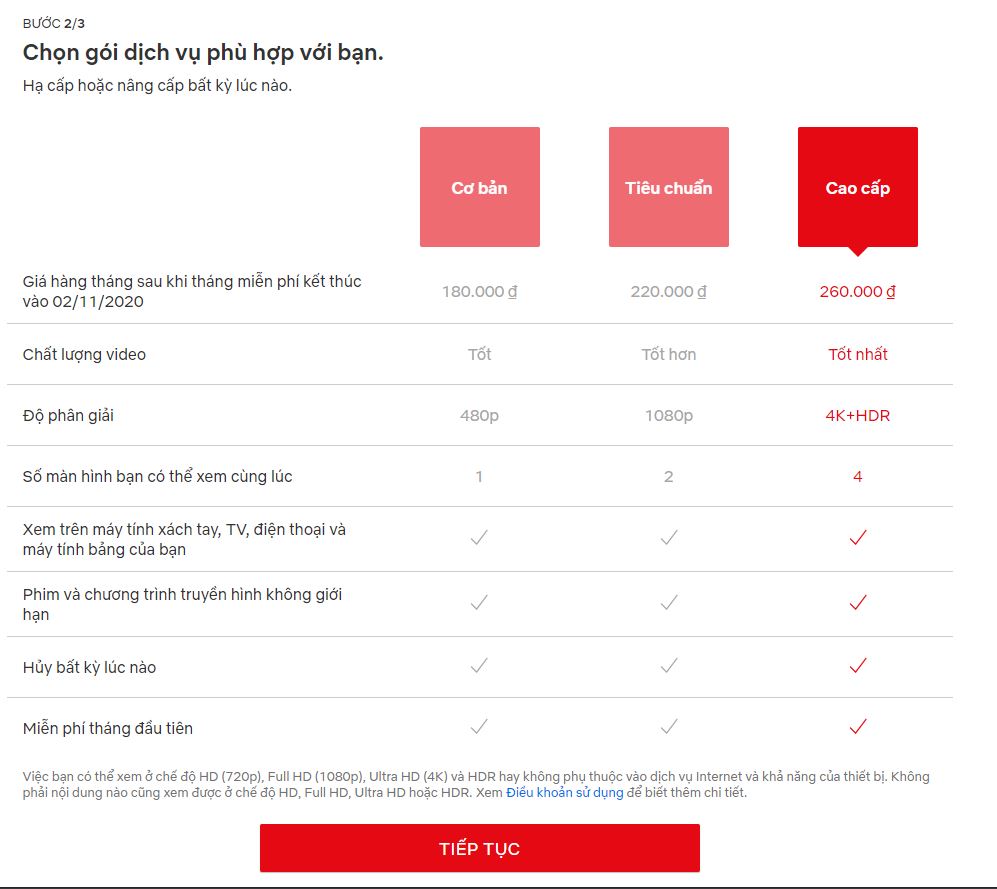 Nếu bạn tìm kiếm cách tiết kiệm chi phí, có thể đăng ký các gói cước với mức giá hợp lý. Gói Mobile của Netflix chỉ có giá 70.000 VNĐ/tháng, trong khi gói Basic và Standard có giá lần lượt là 180.000 VNĐ và 260.000 VNĐ. Đặc biệt, bạn có thể trải nghiệm chất lượng 4K với gói cao cấp nhất.