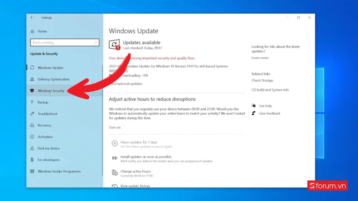 Để tắt phần mềm diệt virus Windows Defender trên Windows 10, trước tiên bạn cần mở ứng dụng Cài đặt. Bạn có thể làm điều này bằng cách nhấn tổ hợp phím Windows + I. Sau khi cửa sổ Cài đặt mở ra, hãy chọn mục “Cập nhật & Bảo mật” (Update & Security) và sau đó đi đến phần “Bảo mật Windows” (Windows Security).