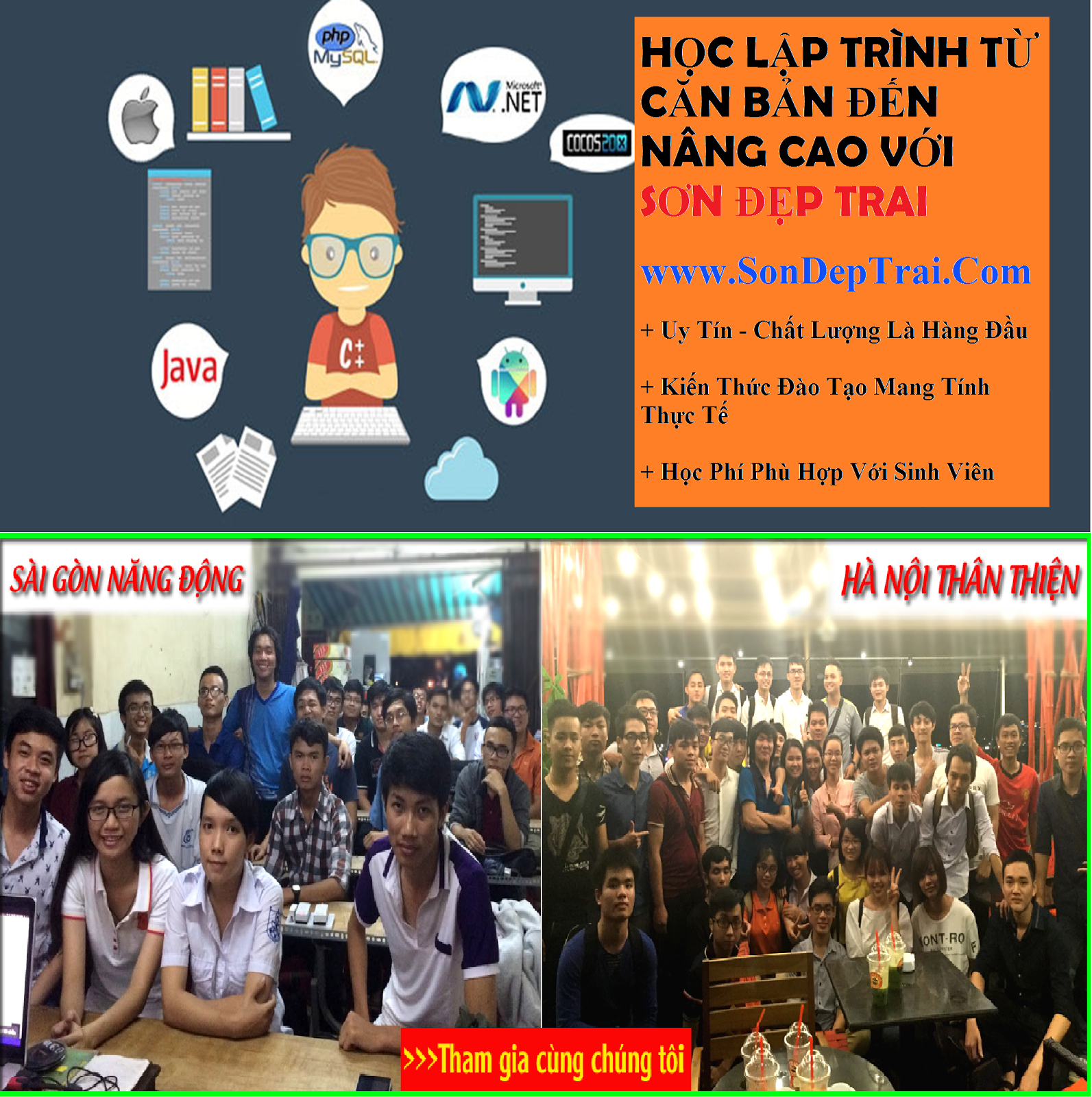 Khóa học lập trình Sơn Đẹp Trai là một lựa chọn rất phù hợp cho những bạn muốn bắt đầu hoặc nâng cao kỹ năng lập trình một cách bài bản và dễ hiểu. Khóa học tập trung đào tạo từ căn bản đến nâng cao, đặc biệt về lập trình hướng đối tượng với các ngôn ngữ như C++, C# và phát triển game đa nền tảng trên Android, iOS và Windows Phone.