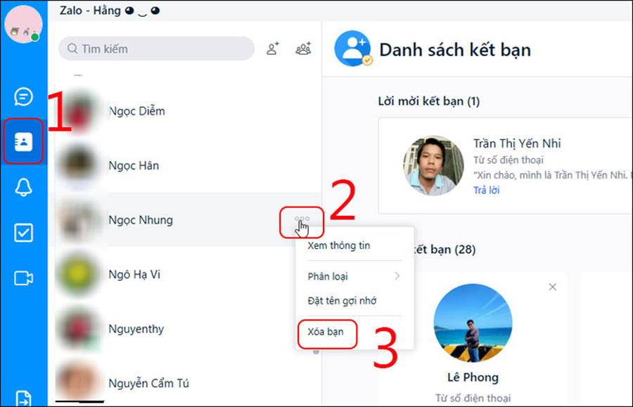 Cách thực hiện việc xóa bạn cũng rất đơn giản. Bạn chỉ cần vào Zalo, chọn danh bạ, tìm tên tài khoản cần xóa, vuốt từ phải sang trái và chọn “Xóa”. Sau đó, xác nhận việc xóa, và quá trình hoàn tất. Rất nhanh chóng và dễ dàng, nhưng cũng cần phải cân nhắc trước khi quyết định.